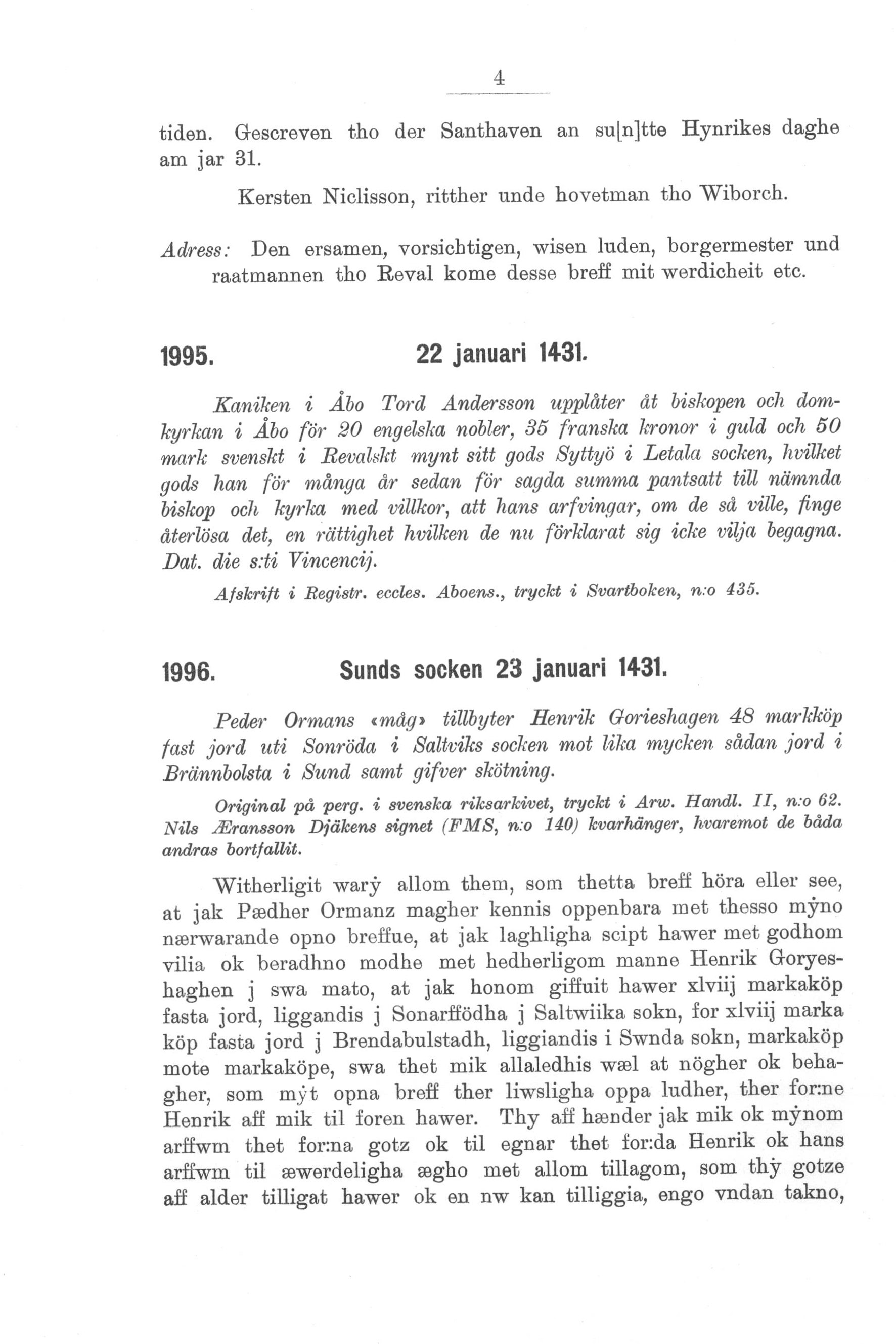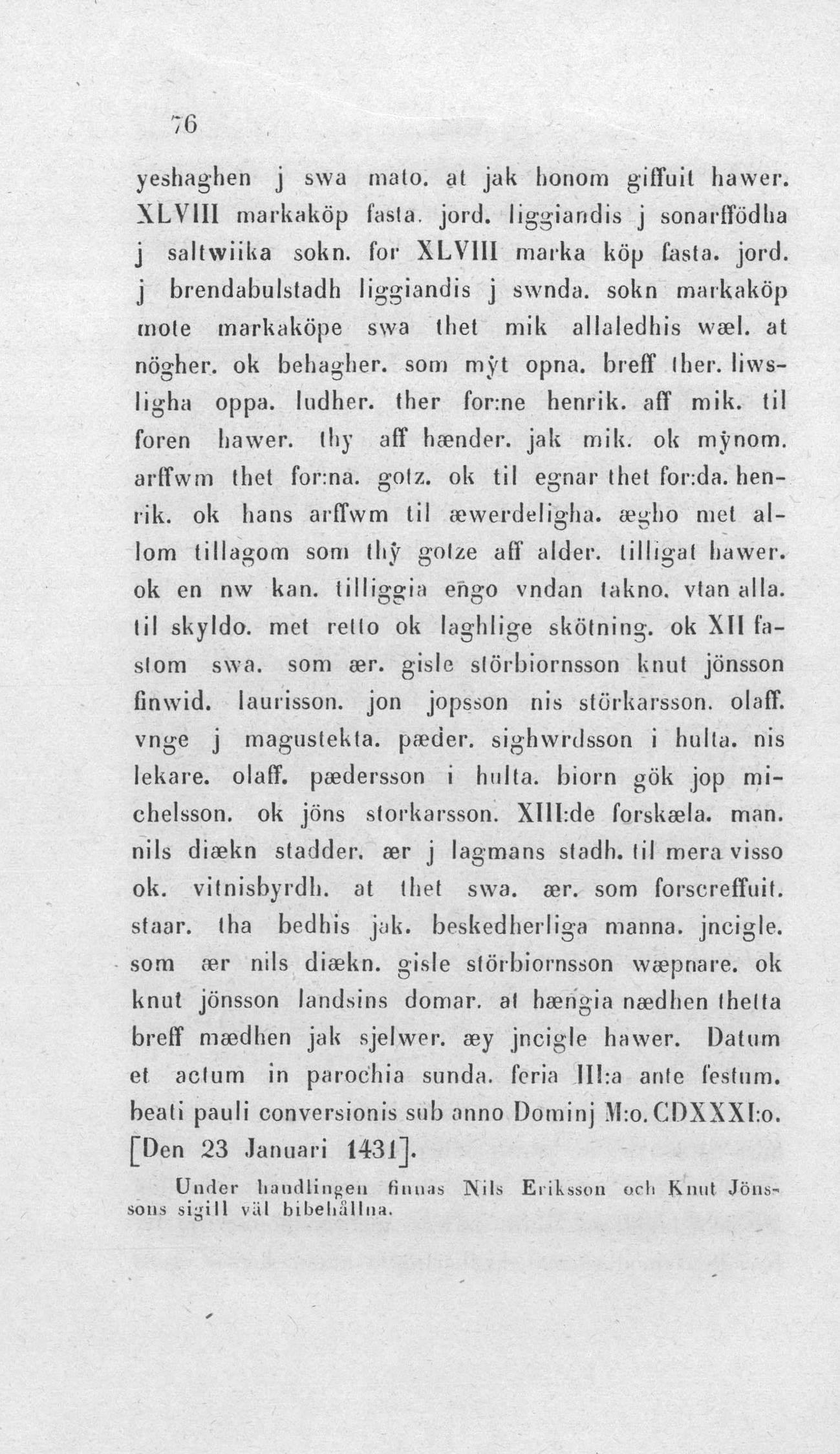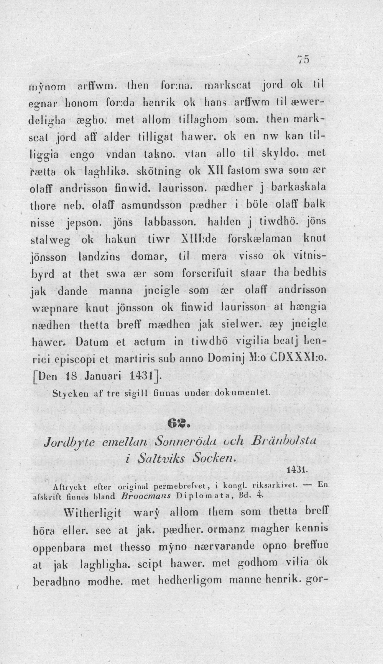 Peder Ormans "måg" tillbyter Henrik Gorieshagen 48 markköp fast jord uti Sonröda i Saltviks socken mot lika mycken sådan jord i Brännbolstad i Sund samt ger skötning.