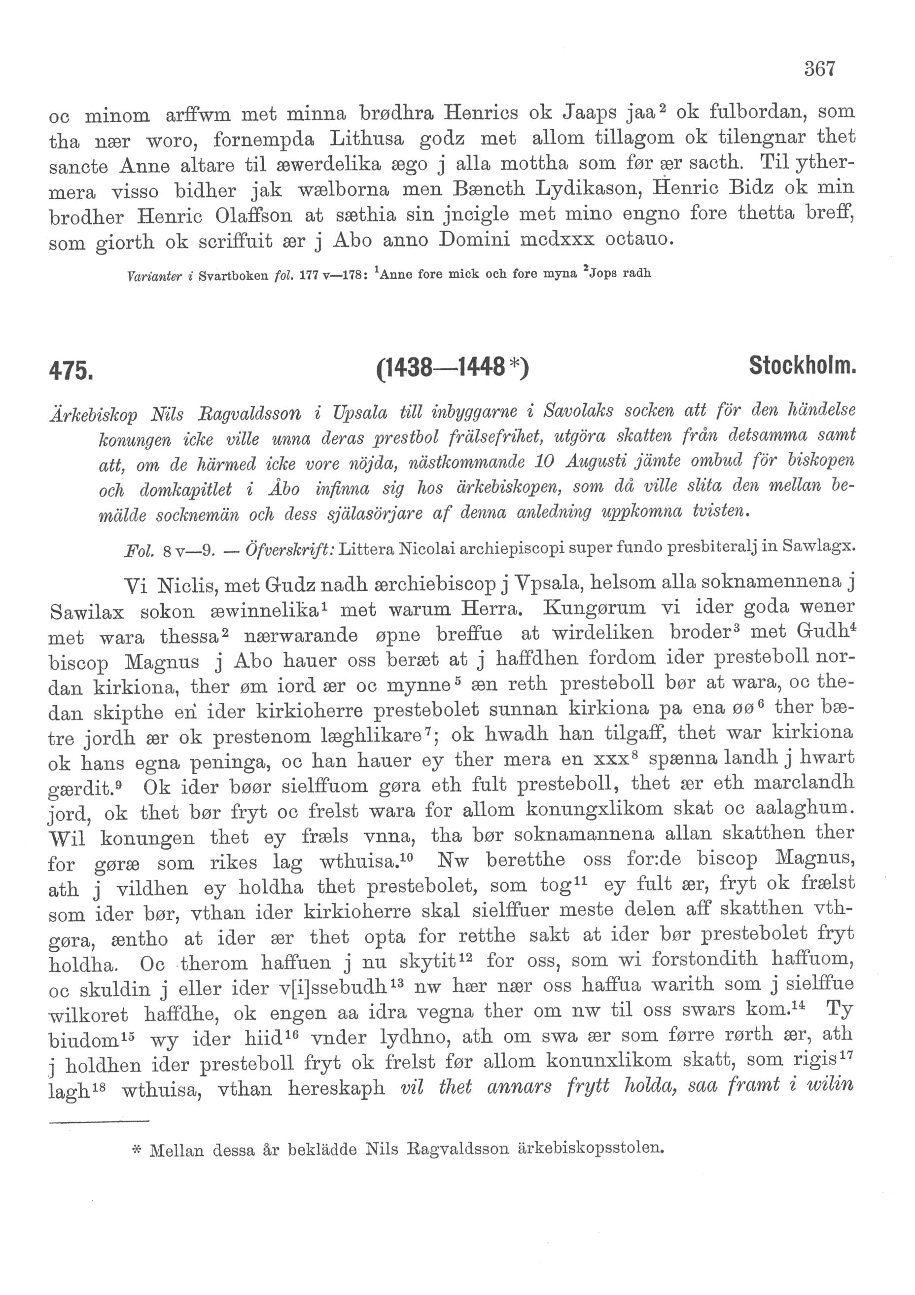 Domprosten i Uppsala Mattis Olafsson säljer för 100 mark, som han kvitterar, till S:t Annas altare i Åbo domkyrka sitt i S:t Karins socken belägna gods Littois.