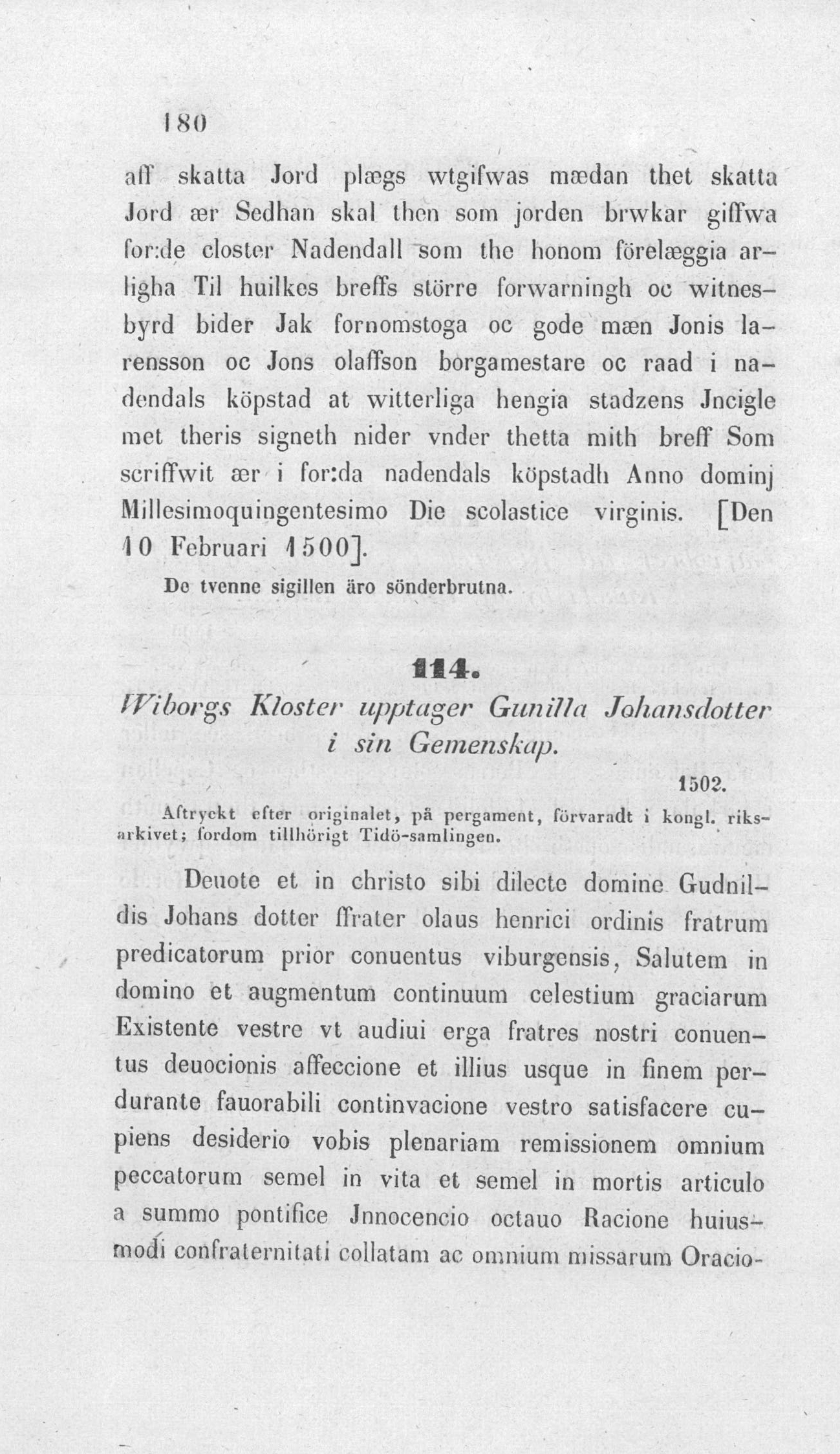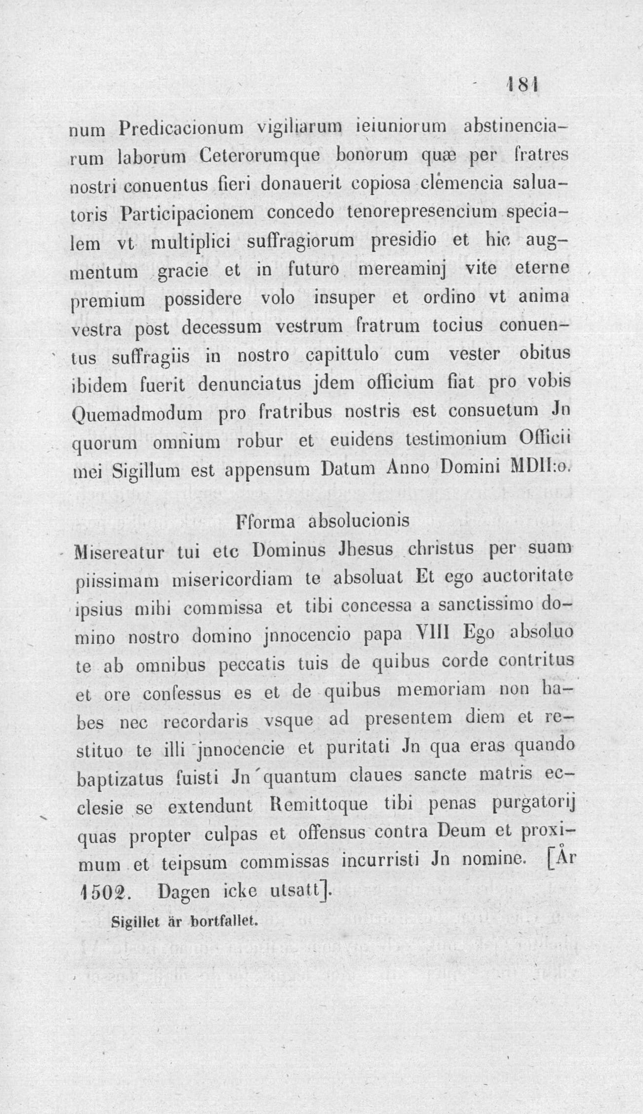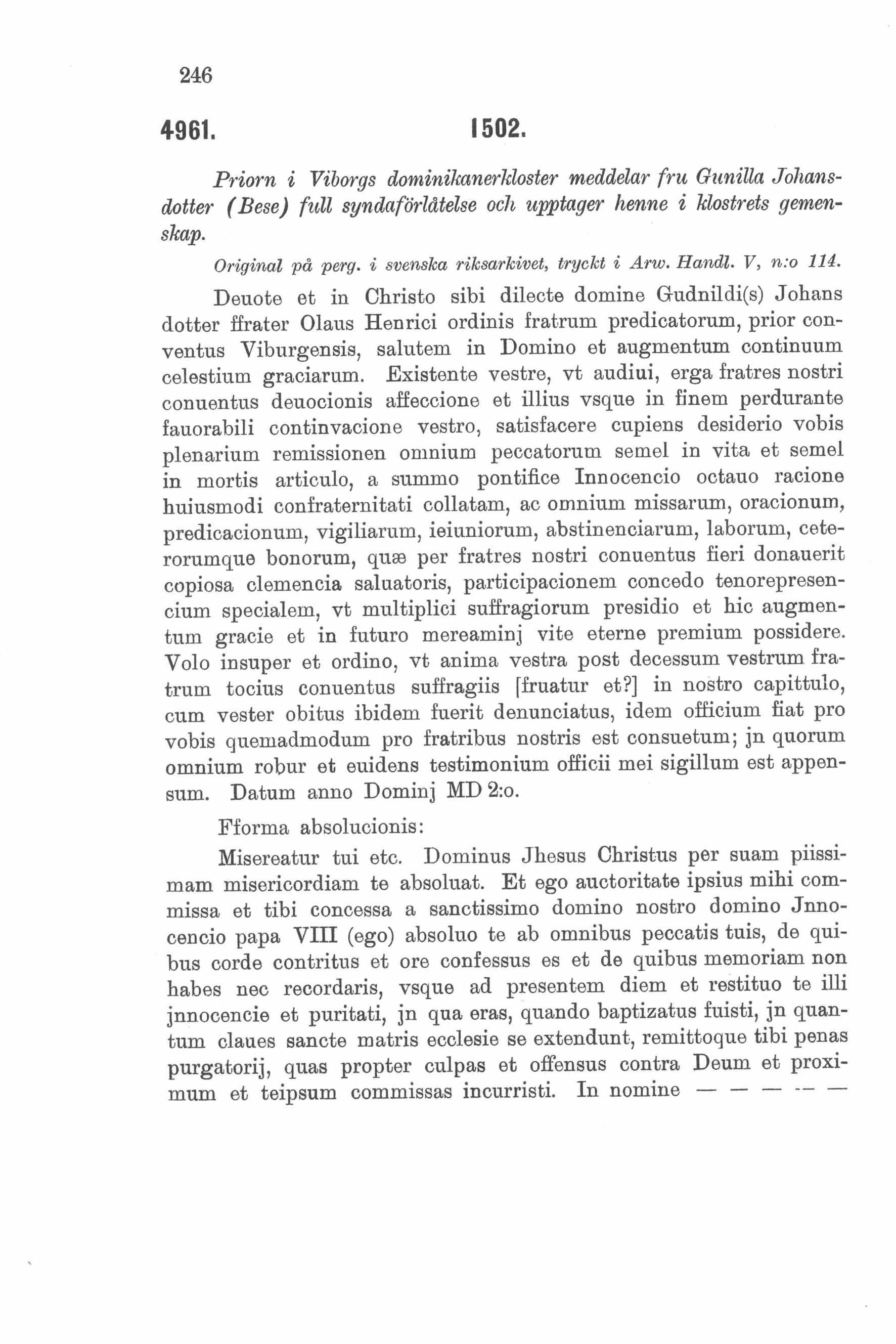 Priorn i Viborgs dominikanerkloster meddelar fru Gunilla Johansdotter (Bese) full syndaförlåtelse och upptar henne i klostrets gemenskap.